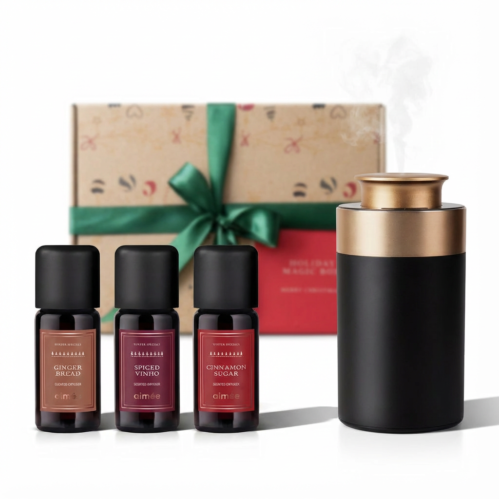 Difuzor de arome Black-Gold, împreună cu Sugar Cinnamon, Gingerbread și Spiced Vinho, un trio creat pentru atmosfera sezonului rece. Acorduri dulci-condimentate care încălzesc spațiul și îi dau un aer primitor, potrivit pentru serile de iarnă sau pentru a fi oferit cadou. Ambalat în cutie specială de Crăciun.